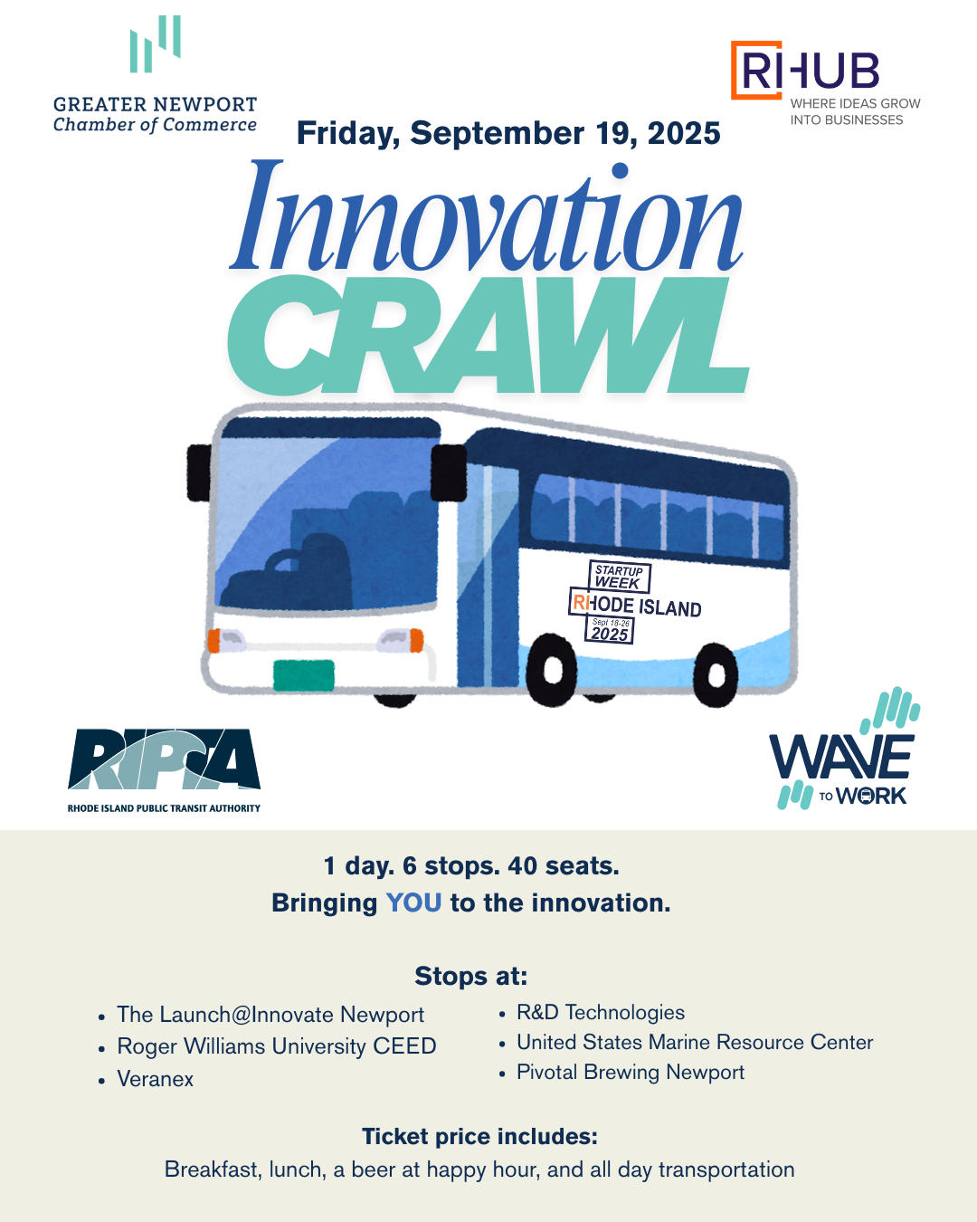 The Innovation Crawl, a collaborative effort by Innovate Newport and RIHub, offers participants a unique opportunity to explore Rhode Island’s dynamic innovation ecosystem. Designed to inspire and engage, the program highlights some of the state’s most innovative companies and spaces through immersive experiences.